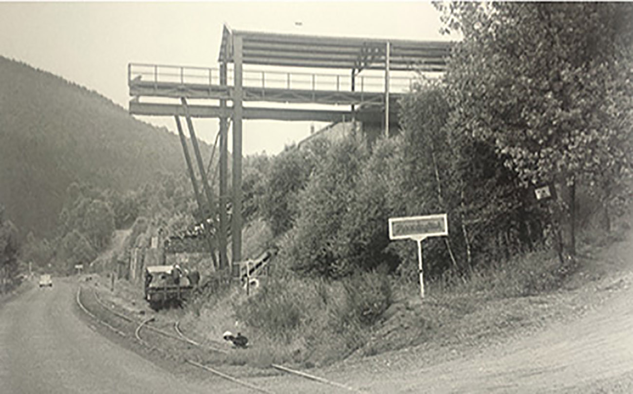 Vom Maschinenschacht aus geht ein Förderband über das Gleisbett der Freien-Grunder-Eisenbahn sowie über die Landstraße Salchendorf-Wilden ins heutige „Naturschutzgebiet Wildebachtal“ zu den Absetz- und Klärbecken der Grube.